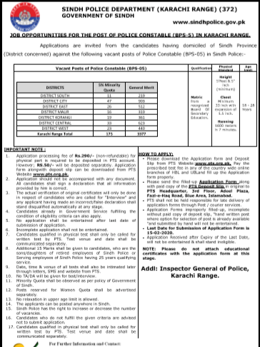 Job Opportunity For Job Police Constable BPS(05) In Karachi Range